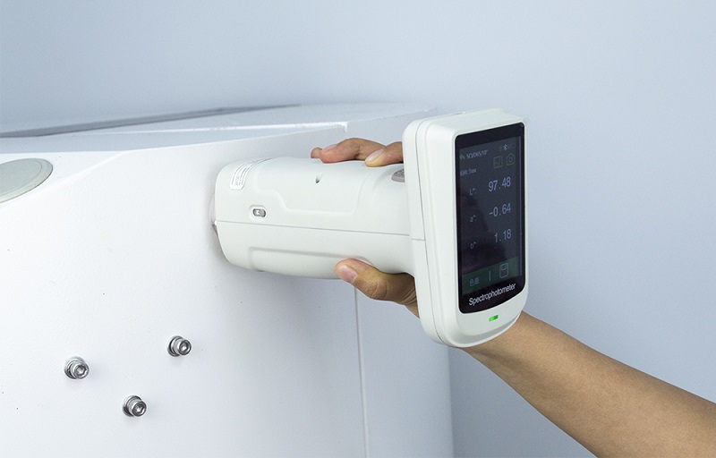 可將粉末涂料盛入比色皿或粉末測試盒后,用臺式分光測色儀進行精確測量。