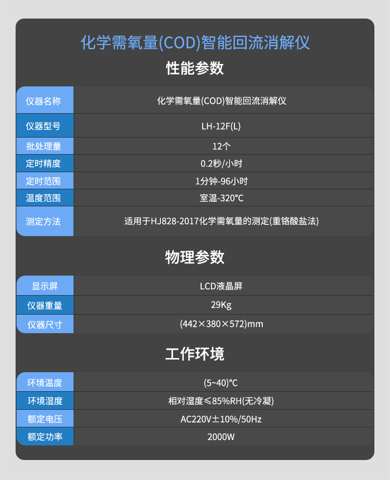 連華科技LH-12F(L)化學需氧量(COD)智能回流消解儀
