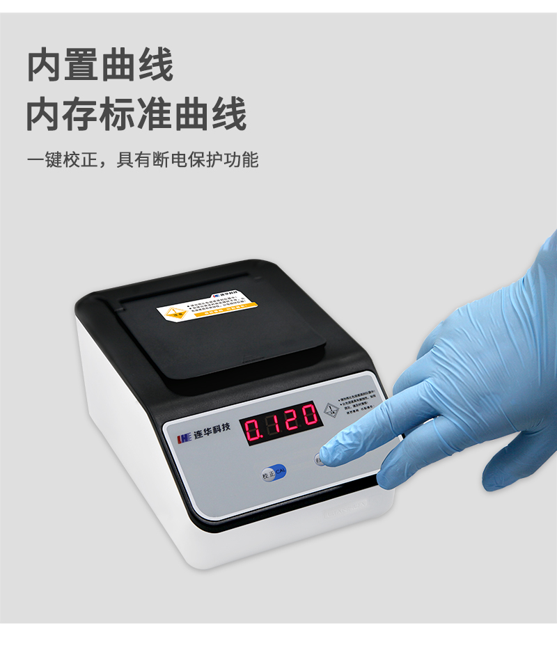 曲線參數(shù):內(nèi)存標(biāo)準(zhǔn)曲線,可直讀濃度, 具有斷電保護(hù)功能